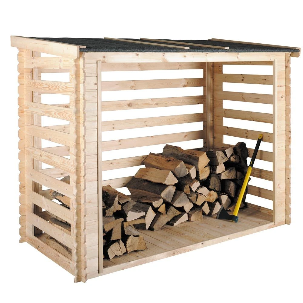 Abri bûches livré avec plancher, toiture étanche en bois + toile bitumée.