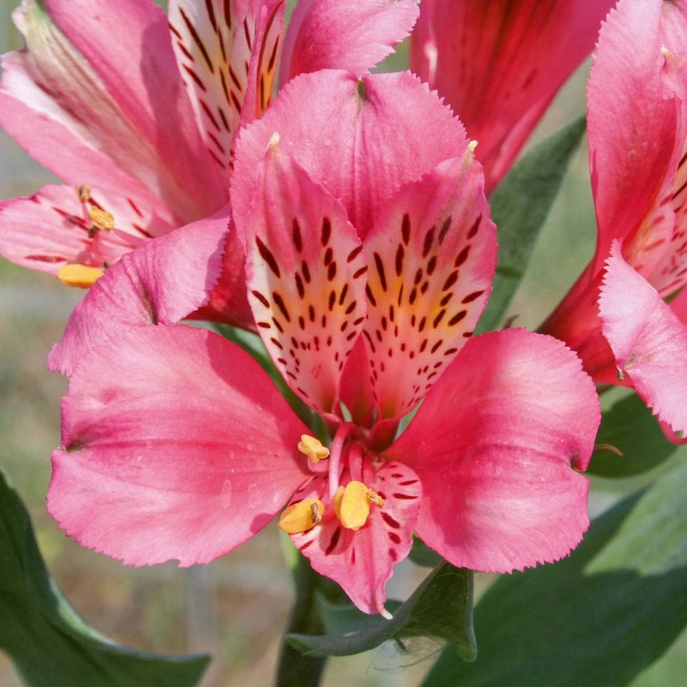 D’aspect exotique, ses fleurs s’habillent d’un lumineux rose intense et nuancé, éclairées dans leur cœur de macules blanc crème et finement striées de marques pourpre acajou. Avec ses longues tiges, cette plante bulbeuse offre continuellement d’excellentes fleurs à couper qui peuvent durer jusqu’à 3 semaines en vase !