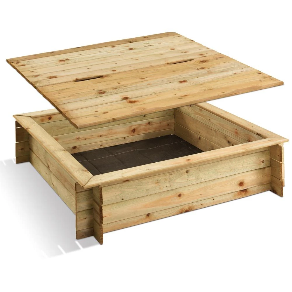 Ce bac à sable, par sa taille optimale, sera pour les tous petits un terrain de jeux et d’explorations particulièrement apprécié. Fabriqué en pin traité par autoclave et assemblé par emboîtement, il fait preuve d’une solidité et d’une durabilité certaines. Livré en kit, assemblage par vis et par emboîtement. Livré avec géotextile de protection – livré sans fond