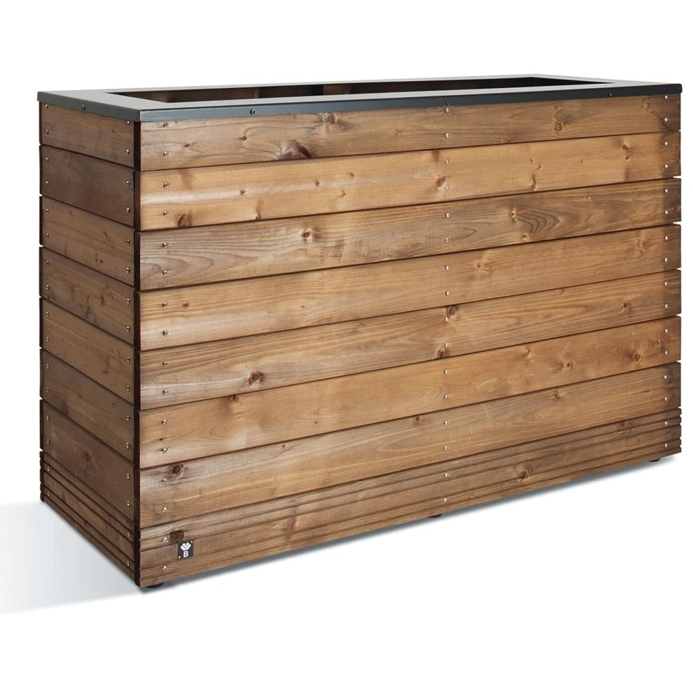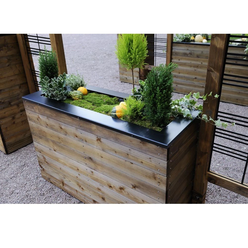 Bac à fleurs confectionné à partir de sapin et d’acier, lui donnant ainsi un look contemporain. Résistance aux attaques biologiques et aux intempéries garantie par un traitement autoclave de classe 3. Convient particulièrement à la culture des arbustes de taille moyenne (hortensia, camélia…).