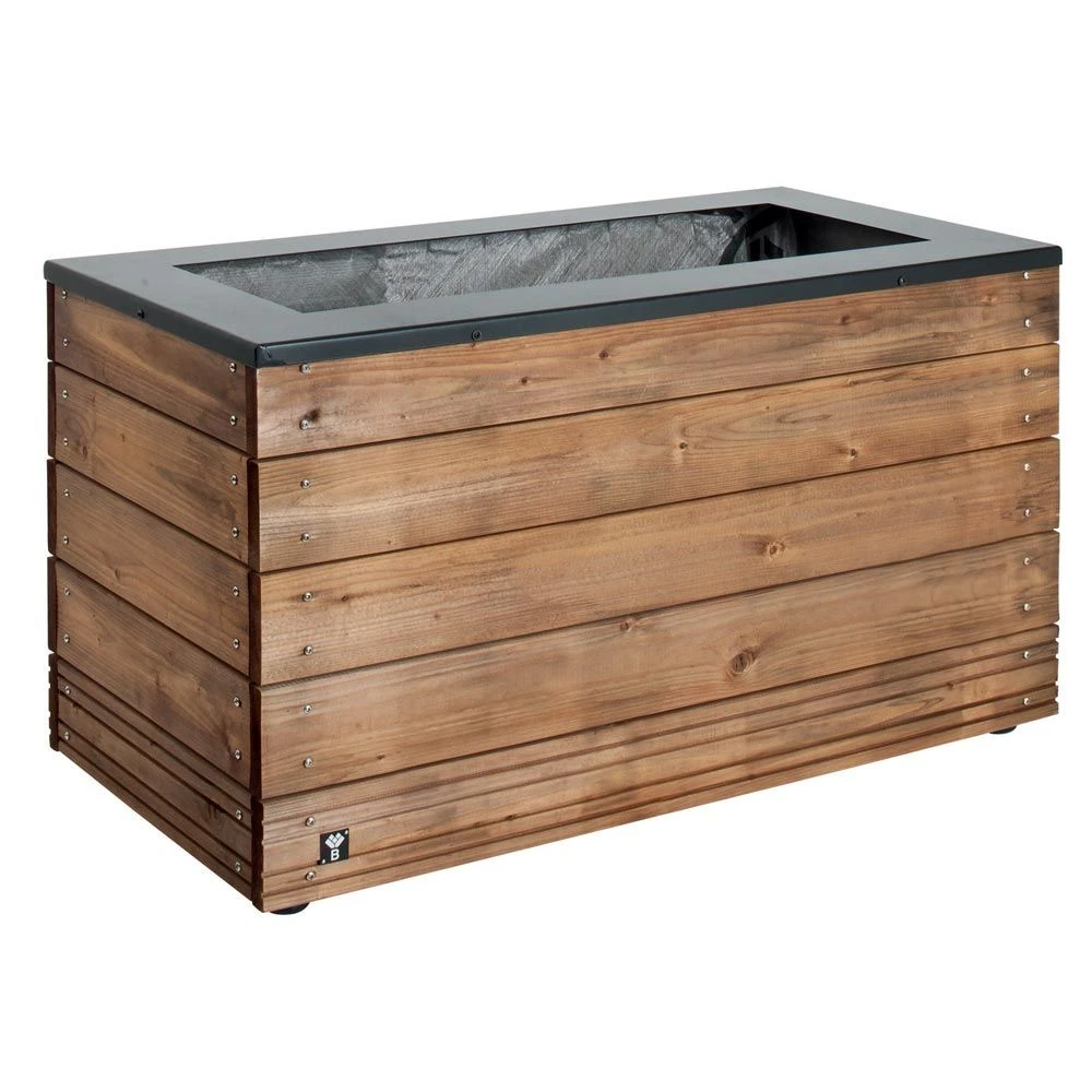 Bac à fleurs rectangulaire fabriqué à partir de sapin et d’acier, lui donnant un look contemporain. Résistant aux attaques biologiques et aux intempéries garantie par un traitement autoclave de classe 3. Il convient à la culture des arbustes de taille moyenne (par exemple hortensia, camélia…).