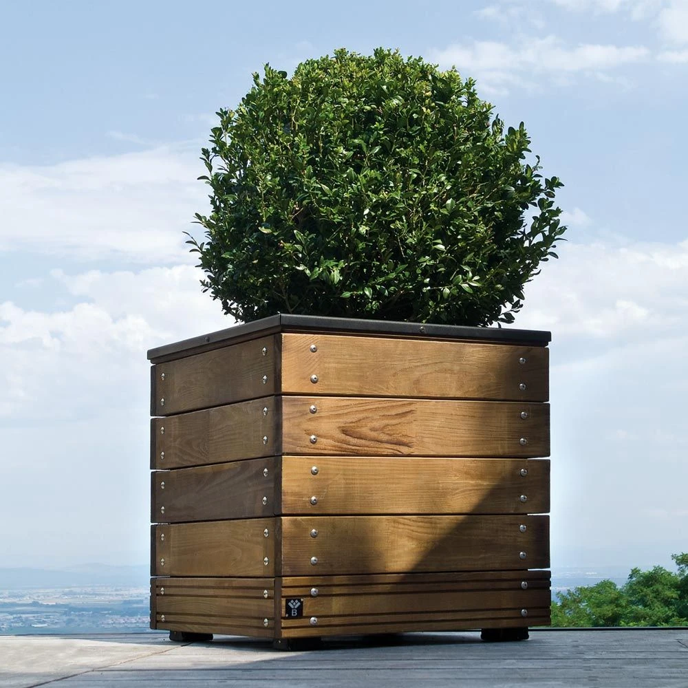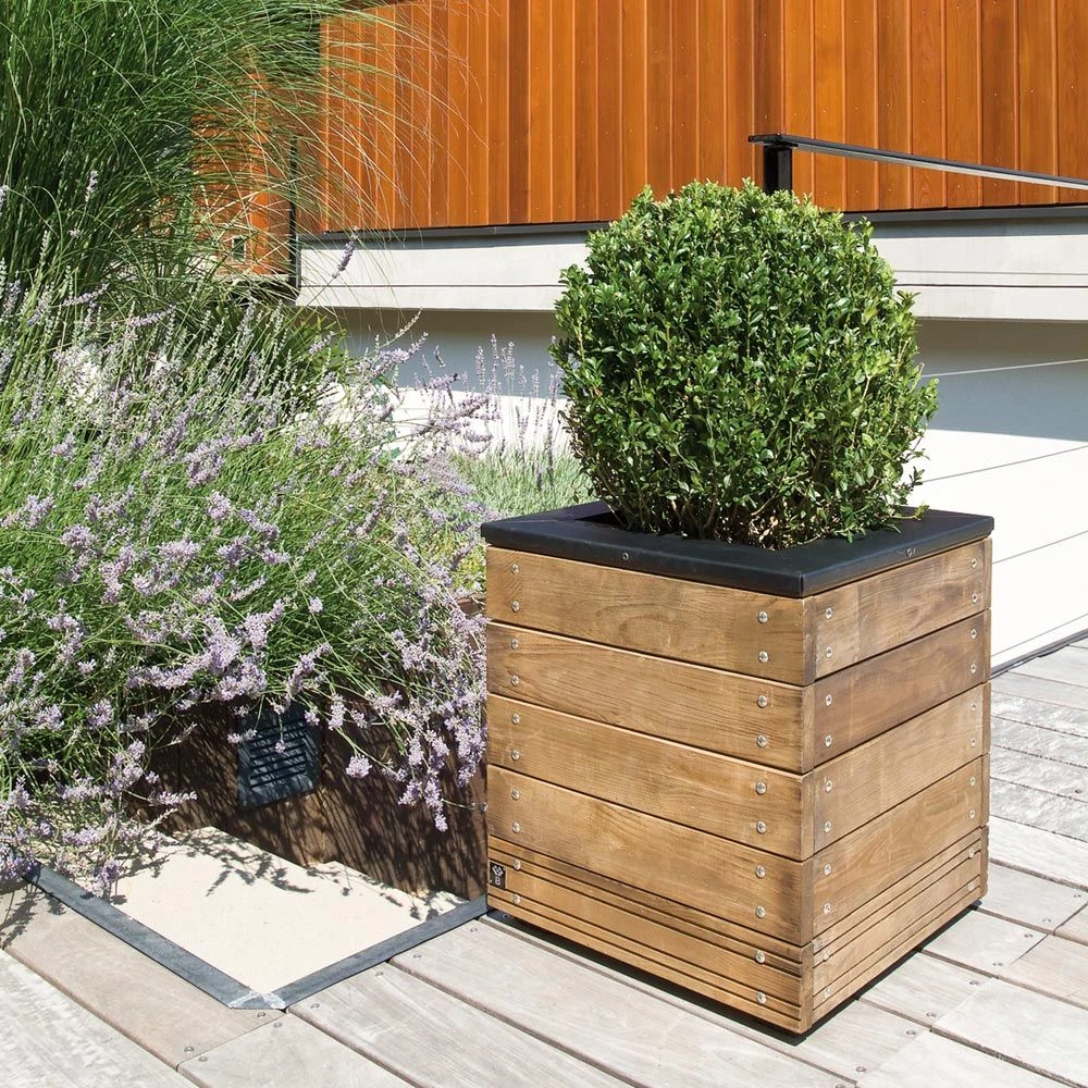 Ce bac à fleurs carré, fait de sapin et d’acier, possède un style contemporain. Résistant aux attaques biologiques et aux intempéries, grâce à un traitement autoclave de classe 3. Ce bac convient tout particulièrement à la culture des arbustes de taille moyenne (hortensia, camélia…).
