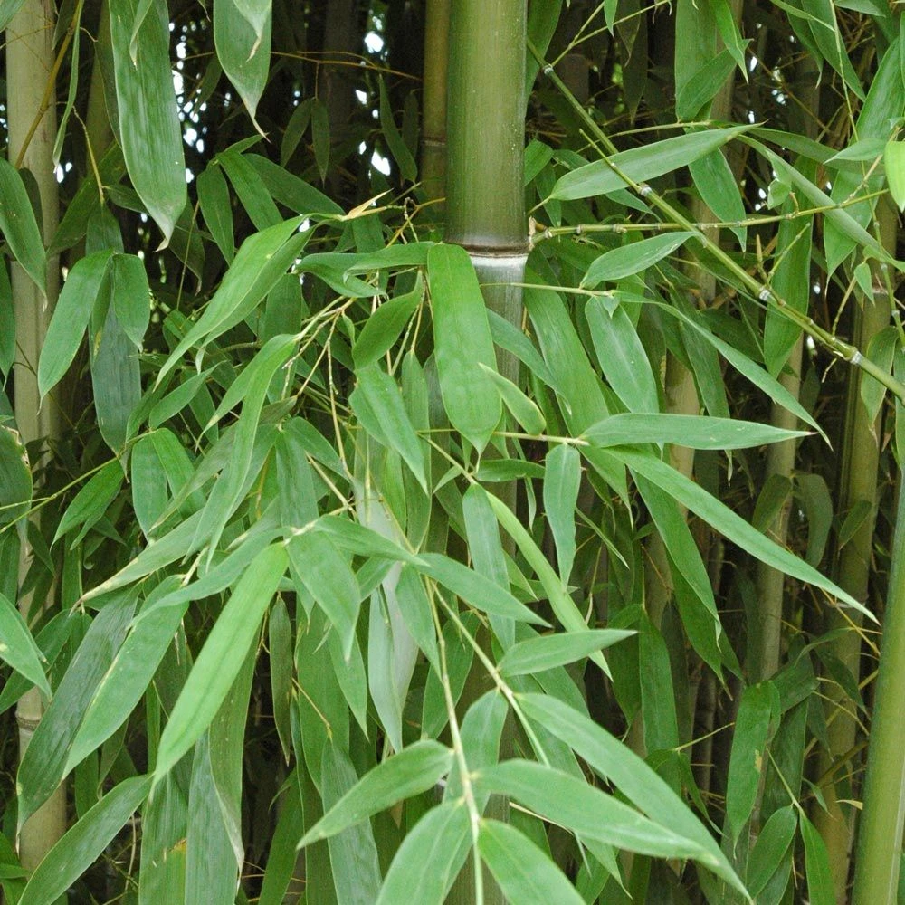 Le Bambou Phyllostachys Nuda possède un port léger. Ses chaumes sont vert foncé aux nœuds nettement soulignés de pruine blanche à la chute des gaines. Son feuillage est souple vert foncé.