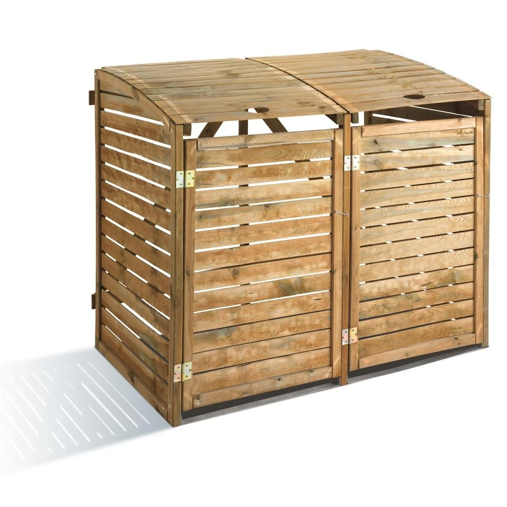 Un cache poubelle double très pratique aux lignes simples, qui mettra Ă l’abri du regard vos bacs Ă ordures en toute discrĂ©tion. Ouverture frontale et par le dessus. Sans fond.