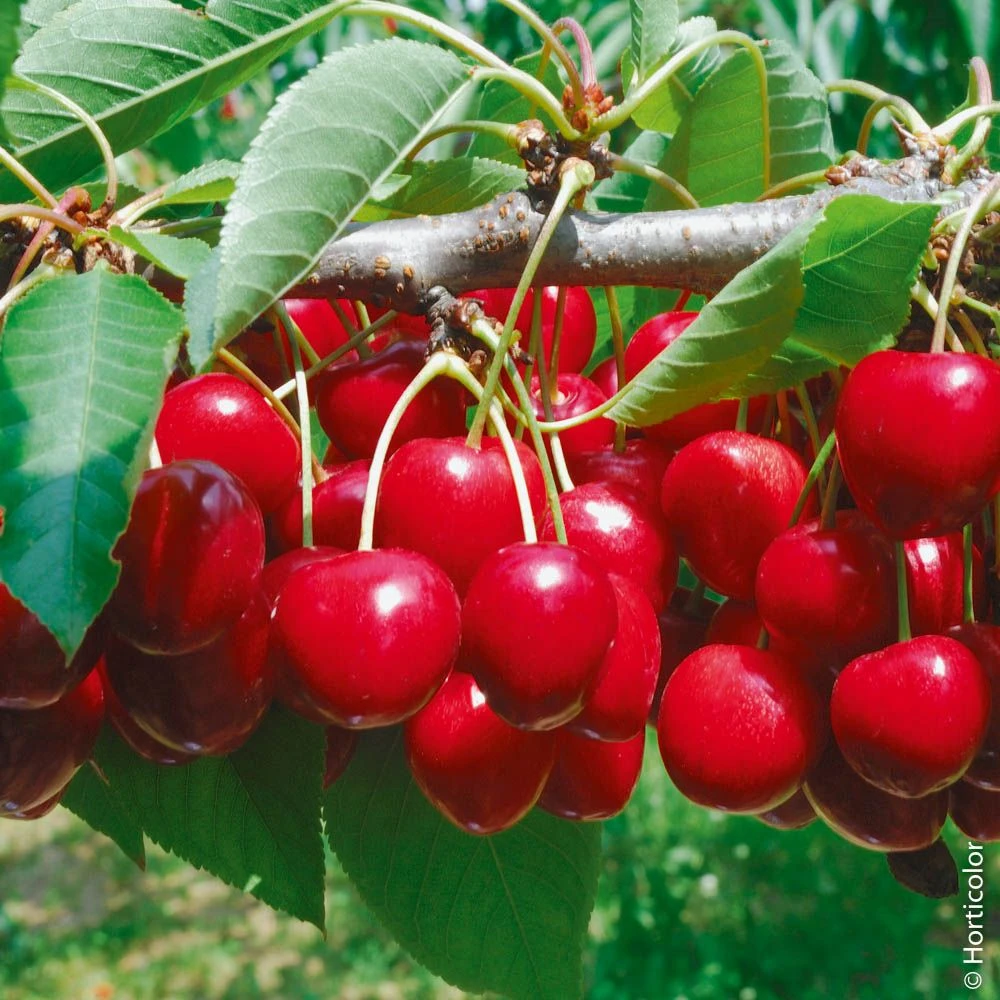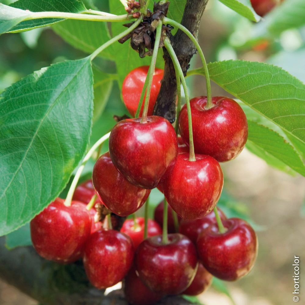 Le cerisier bigarreau de plus gros calibre Ă Ă©piderme vermillon rouge, très attractif. Ses cerises sont d’une excellente qualitĂ© gustative, sucrĂ©e. MaturitĂ© mi-juin. Production amĂ©liorĂ©e en associant avec la variĂ©tĂ© de cerisier Burlat. Mise Ă fruits 2 Ă 4 ans environ après plantation.