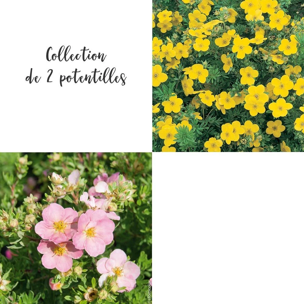 Une collection de deux potentilles très lumineuses, idéales pour les bacs et rocailles. Floraison de mai à octobre.