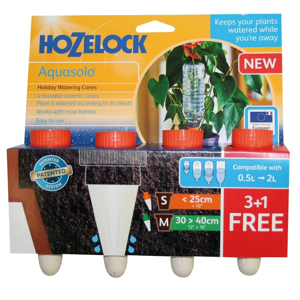 Partez tranquillement en vacances et simplifiez-vous l’entretien de vos plantes en pot grâce aux cônes d’arrosage AQUASOLO ®. Faciles à installer, ces cônes diffusent jusqu’à 28 jours l’eau nécessaire au bon développement de vos protégées. Nous vous les proposons en plusieurs tailles au débit différent pour s’adapter idéalement à la taille de vos pots et aux besoins de vos plantes.