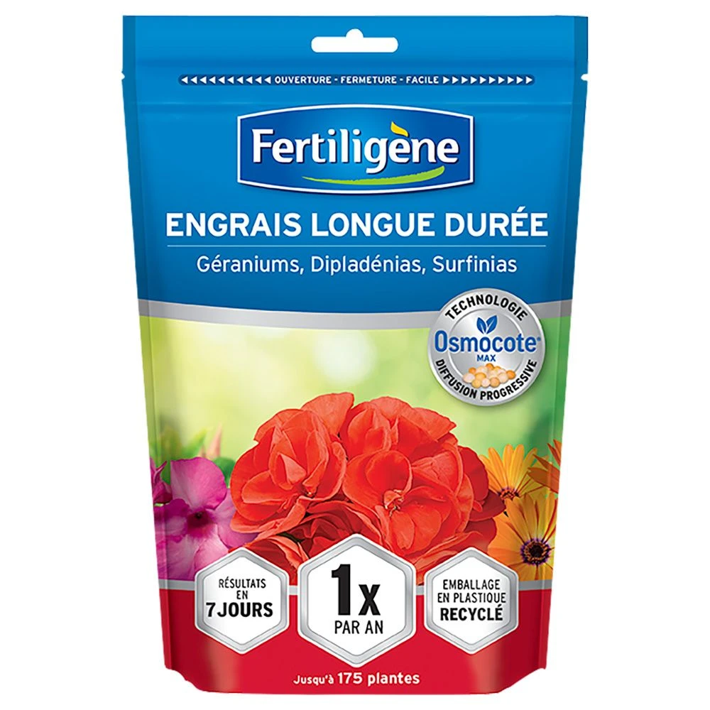 Convient parfaitement à toutes les variétés de géraniums, et autres plantes fleuries telles que surfinias, dipladénias, fuchsia, agapanthus, pétunias, bégonias, capucines, œillets d’Inde, sauges, … cultivées en pleine terre ou en jardinières.