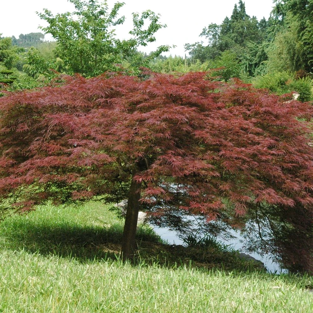 Le feuillage de l’ érable du Japon Dissectum Garnet est fin découpé. De couleur rouge pourpre au printemps, il verdit légèrement en été. En automne, il devient rouge feu.