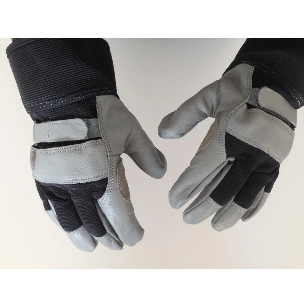Nous avons sélectionné ces gants en cuir pour les gros travaux qu’on peut être amené à faire au jardin comme à la maison. Fabriqués en cuir épais, la paume des mains est renforcée par un coussin tout aussi épais. La boucle de serrage permet de fermer et d’ajuster la tenue. Un tissus légèrement élastique complète le dispositif pour aérer et donner de la souplesse.