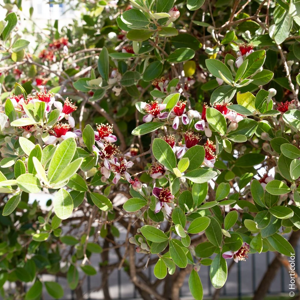 Décoratif par son feuillage persistant, ses fleurs estivales exotiques et ses fruits comestibles, le Goyavier du Brésil, nommé Acca sellowiana ou parfois Feijoa (son nom brésilien), forme un charmant arbuste à cultiver en pleine terre comme en pot. Malgré une rusticité de l’ordre de -10°C, il s’acclimate facilement dans de nombreuses régions, d’autant plus s’il est planté en sol bien drainé, en situation abritée et ensoleillée.
