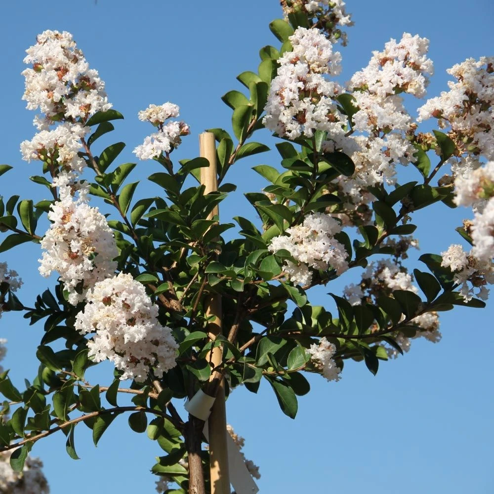Une avalanche de fraîcheur au cœur de l’été ! Variété française récente, le Lagerstroemia NEIGE D’ÉTÉ ® ou lilas des Indes blanc, de la gamme INDIYA CHARMS ®, se caractérise par sa parfaite adaptation parfaite aux climats froids, une floraison précoce et prolongée et une résistance supérieure à l’oïdium. Grâce à ses qualités incomparables, le Lagerstroemia INDIYA CHARMS ® NEIGE D’ETE ® réussit sous tout climat, en pleine terre comme en grand pot.