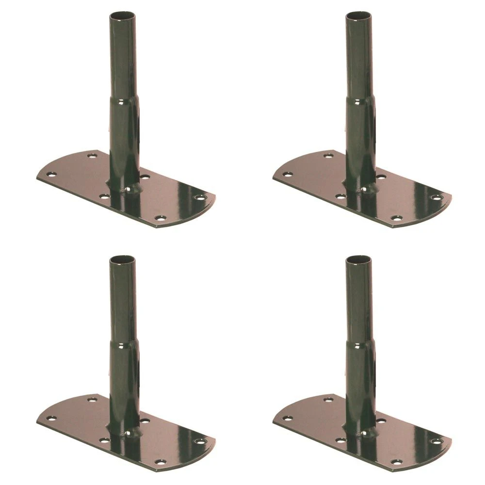 Lot de 4 pieds pour fixer l’arche double décor losange et le tuteur colonne sur des dalles, surfaces en ciment, bois. Dimensions : 130×60 mm et hauteur du tube 120 mm en diamètre 20 mm de couleur vert sapin époxy.