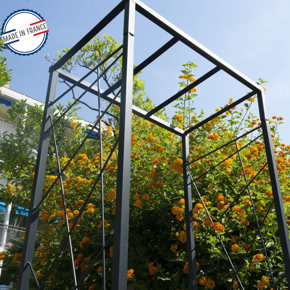 Produite en France, cette pergola haut de gamme peut rester sans végétation ou supporter vos plus belles plantes grimpantes comme les clématites, bignones, jasmins, etc. sans oublier les rosiers grimpants !