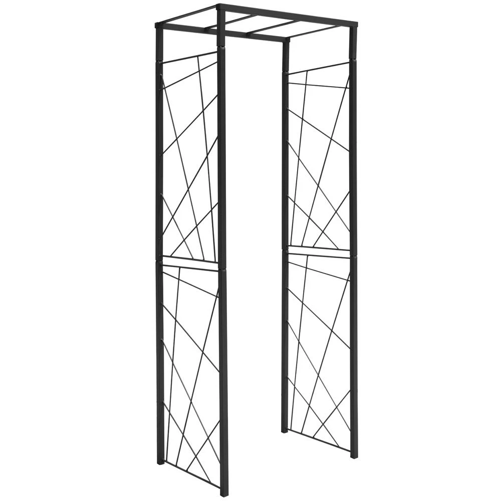 Les dimensions de cette pergola sont 198 cm de hauteur, 50 cm de profondeur et 74 cm de largeur (passage). Livrée démontée, 5 éléments (1 pour le toit et 4 pour les côtés). Montage facile sans outils par emboîtage.