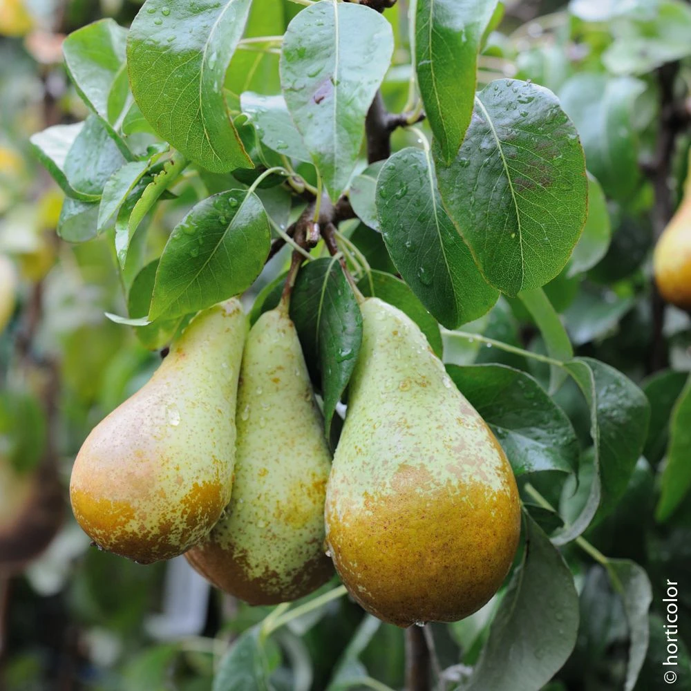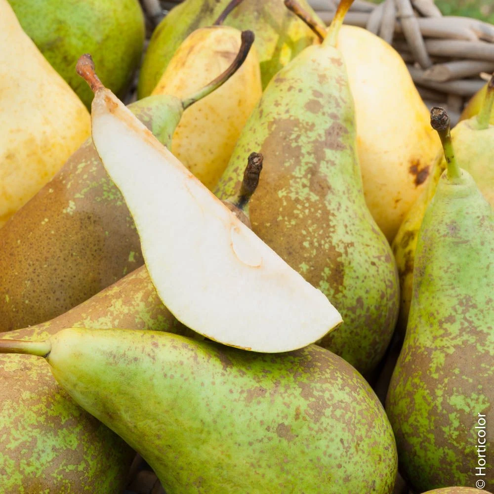 Poirier à fruit allongé, jaune à maturité, de très bonne qualité gustative. Poire à chair fine, fondante, très juteuse et parfumée. Peut se conserver plusieurs mois. Récolte et maturité mi-septembre/mi-octobre. Variétés pollinisatrices : Williams et Doyenne du Comice. Mise à fruits environ 3 à 5 ans après plantation.