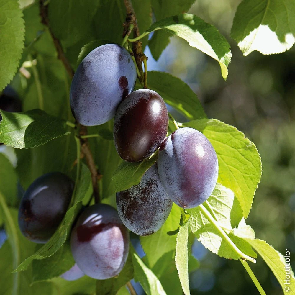 Variété de prunier très productive, avec des prunes violettes à chair jaune. Pour toute utilisation même le séchage. Mise à fruits rapide. Maturité début septembre/mi-septembre. Variété autofertile, mise à fruits 2 à 4 ans environ après plantation.