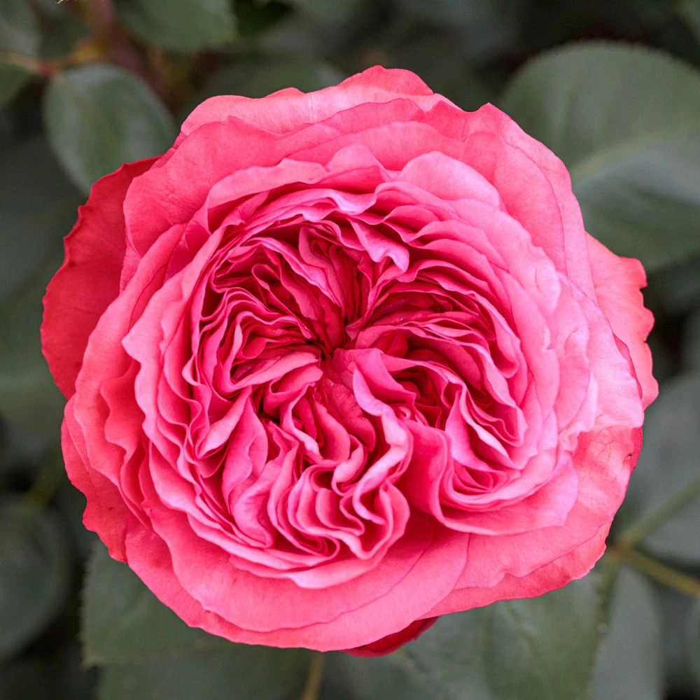 Très doubles, elles arrangent en coupe profonde leur centaine de pétales qui s’ordonnent dans leur cœur en quartiers tourbillonnants, à l’image des plus belles roses anciennes. En parfaite adéquation avec leur forme romantique, elles ont choisi un coloris rose pourpré profond à la fois intense en lumineux.