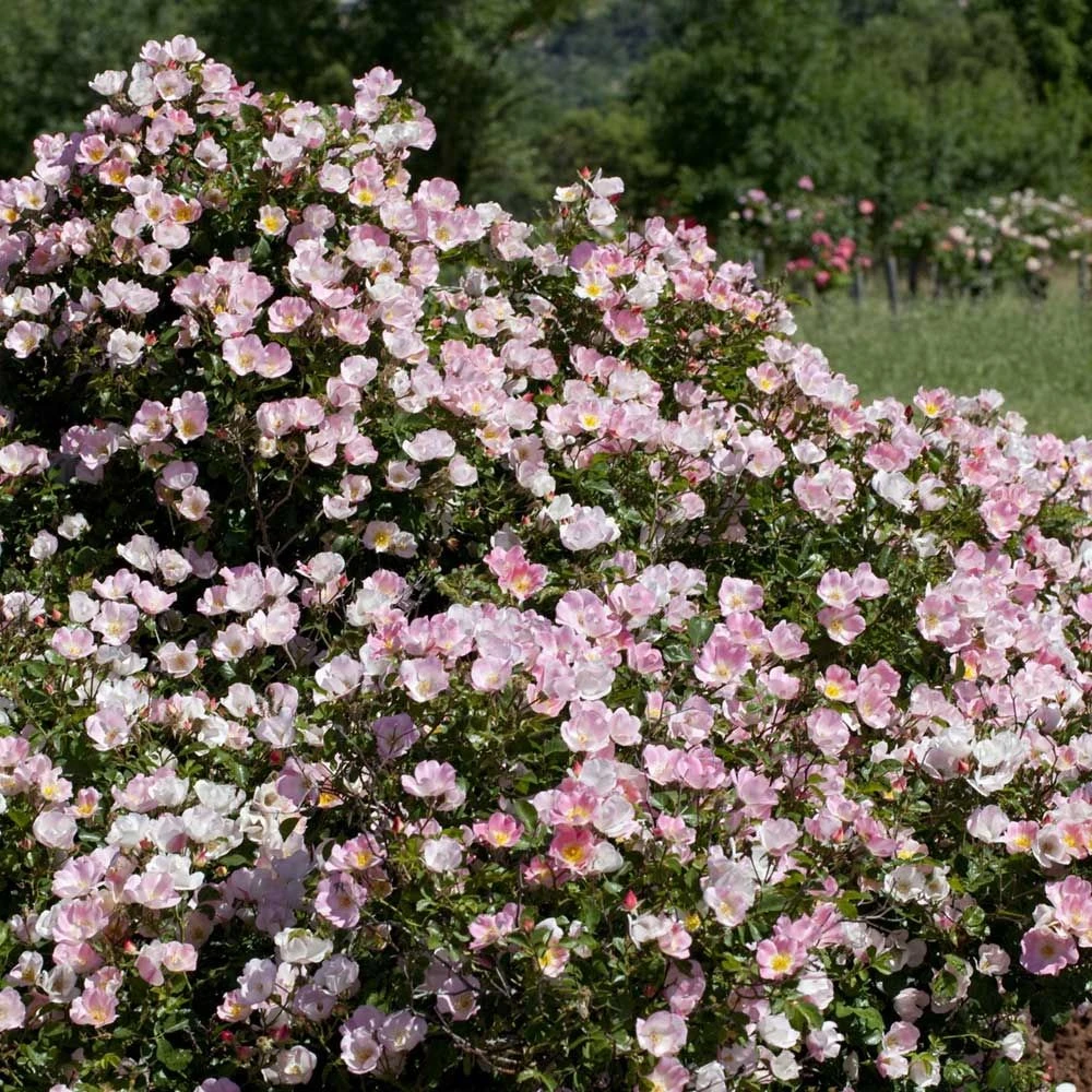 Ainsi, de la fin du printemps jusqu’aux gelées, le rosier BINGO MEILLANDECOR ® Meipotal se couvre sans relâche de nuées de bouquets de 6 à 15 fleurs à 7-8 pétales, laissant apparaître leur cœur d’étamines dorées. Les pétales rose pur retouchés de crème au centre ont la fraîcheur des églantines sauvages.