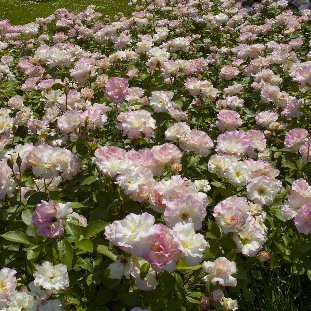 Réunies en bouquets légers de 3 à 7 fleurs, les roses comptent une vingtaine de pétales gracieusement ciselés. D’un blanc presque crème, les pétales s’ourlent d’une marge rose carminé plus ou moins prononcée selon la saison.