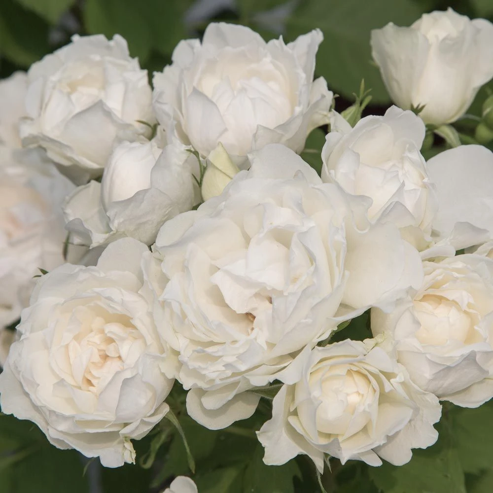 Si, à peine ouverte, ses roses blanches portent une délicate nuance crème à peine rosé, elles évoluent vite vers un blanc quasiment pur remarquablement résistant à la pluie. Coupées, ses roses composent de séduisants petits bouquets et centres de table.