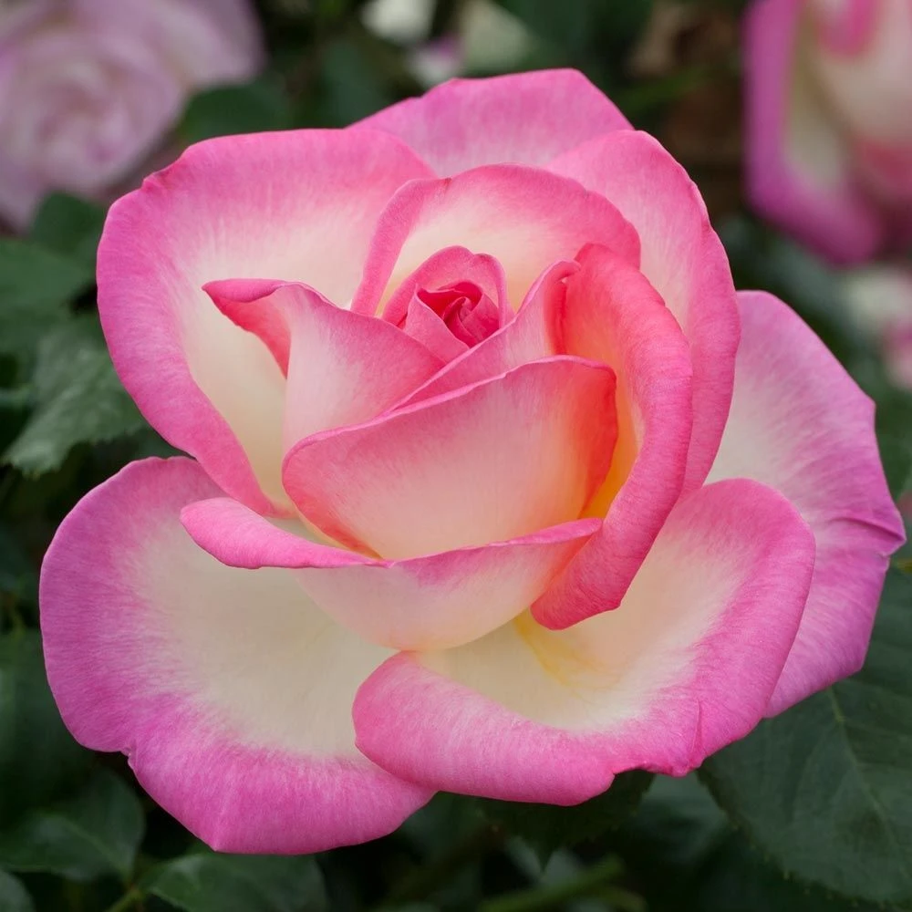 A l’instar du rosier buisson dont il est issu, le rosier grimpant PRINCESSE DE MONACO ® Meibergamu produit les mêmes roses d’environ 30 pétales qui composent une grosse fleur de forme classique de 13-14 cm de diamètre. Clin d’œil au drapeau monégasque, les roses arborent un beau blanc crème qu’une marge rose carminé intense vient progressivement border. Il s’échappe de ses fleurs quasi parfaites un léger parfum bien distinct. Les fleurs coupées composent d’élégants arrangements floraux, leur tige courte les destine plutôt aux centres de table et petits bouquets serrés.