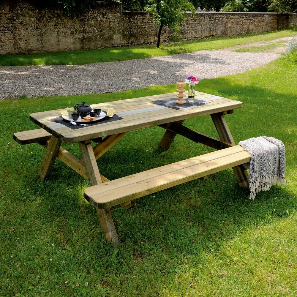 Un encombrement réduit et malgré tout une capacité pour 6 couverts ! Ses lignes simples alliées à une solidité certaine font de cette table pique-nique un incontournable de votre aménagement extérieur. Elle vous permettra de profiter pleinement des beaux jours. Livrée en kit, assemblage par vis.